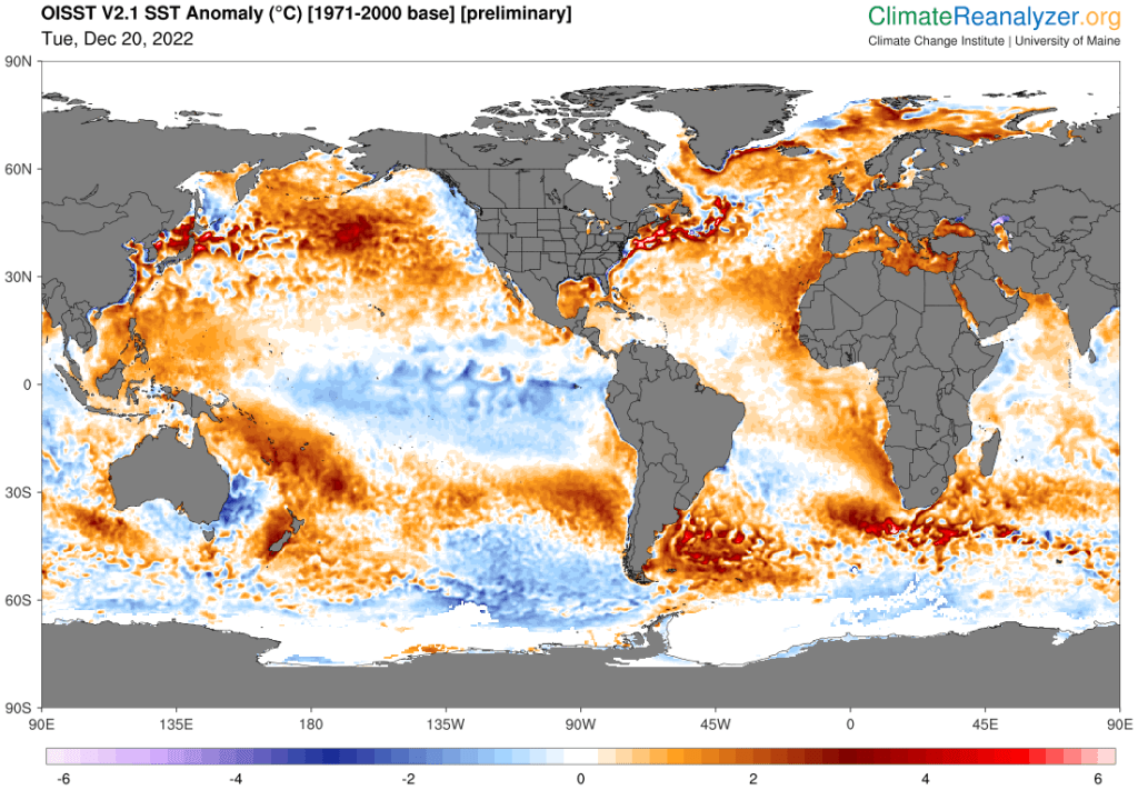 20 Aralık tarihi itibariyle küresel deniz suyu sıcaklıklarının normalden farkları aşağıda: