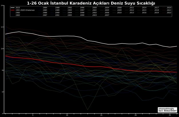 1-26 Ocak İstanbul açıkları yıllara göre deniz suyu sıcaklıkları