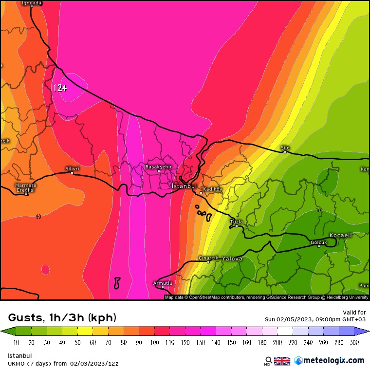 • İstanbul’un büyük kısmı, bu sistemi karla değil şiddetli rüzgarıyla hatırlayacak. Kuzeyli rüzgar, özellikle pazar günü, Avrupa Yakası’nda zaman zaman saatte 100 km ile veya daha hızlı esebilir (Karadeniz’de kompakt alçak basınç / vorteks oluşacak). Rüzgar hamlelerinin hızı anlık olarak saatte 120 km’yi bulabilir. Hava, deniz ve kara trafiği son derece olumsuz etkilenecek. Boğaz köprüleri riskli olacak. İstanbul Havalimanı’nda iniş kalkışlar fırtına ve tipiden dolayı aksayacak. Şehrin Trakya çıkışındaki karayollarında da tipi olacak. Risk almayın. Dışarıdan yemek söylemeyin, kuryeleri riske atmayın.