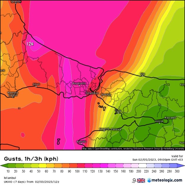 5 Şubat 2023 09Z UKMO modeli rüzgar hamleleri