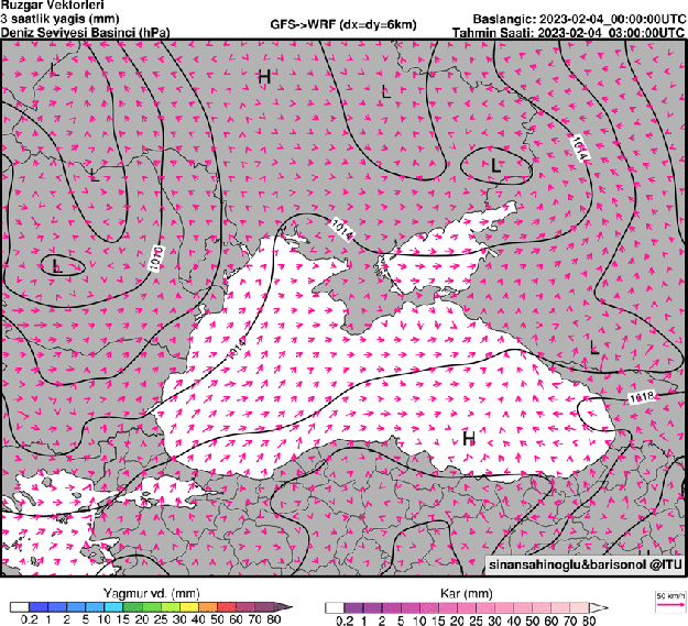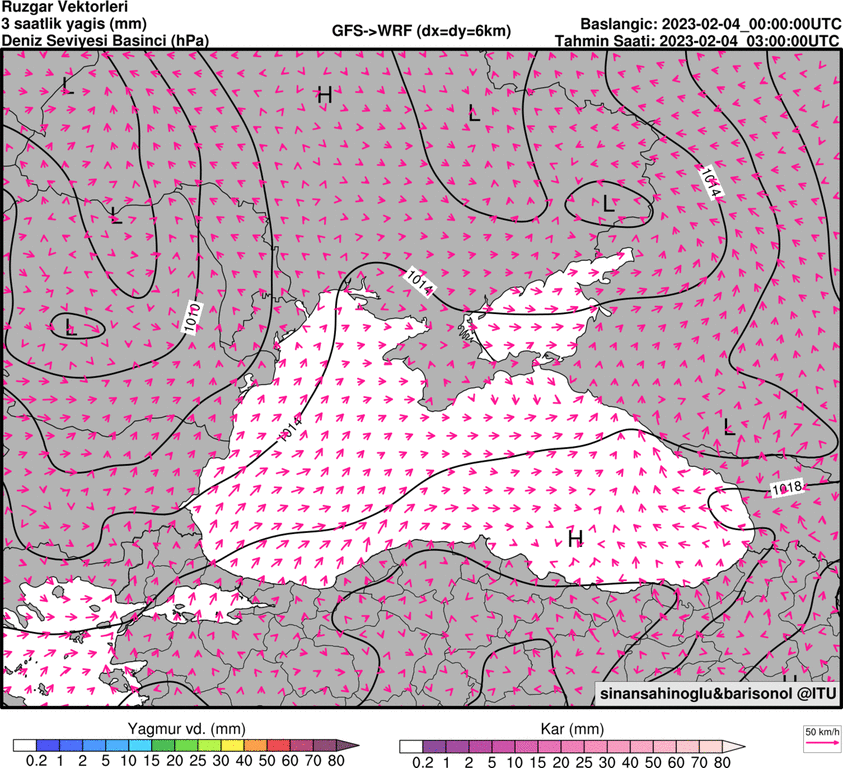 WRF modeli rüzgar, yağış ve deniz seviyesi basıncı