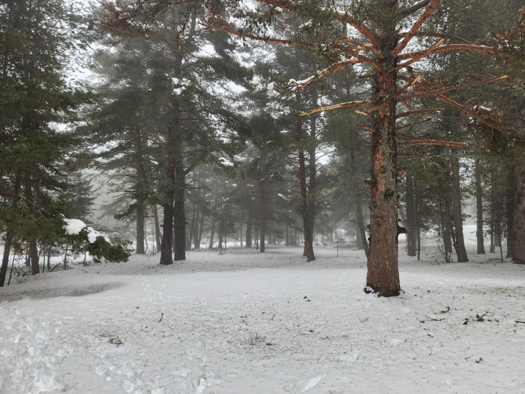 Havaların ısınmaya, karların erimeye başladığı 24 Ocak gününden, Çamkoru – Ankara. Karları eriten sıcak adveksiyon aynı zamanda enfes bir sis oluşturmuştu. Ve tabi bu da sisli ve karlı sarıçam ormanı manzarası.