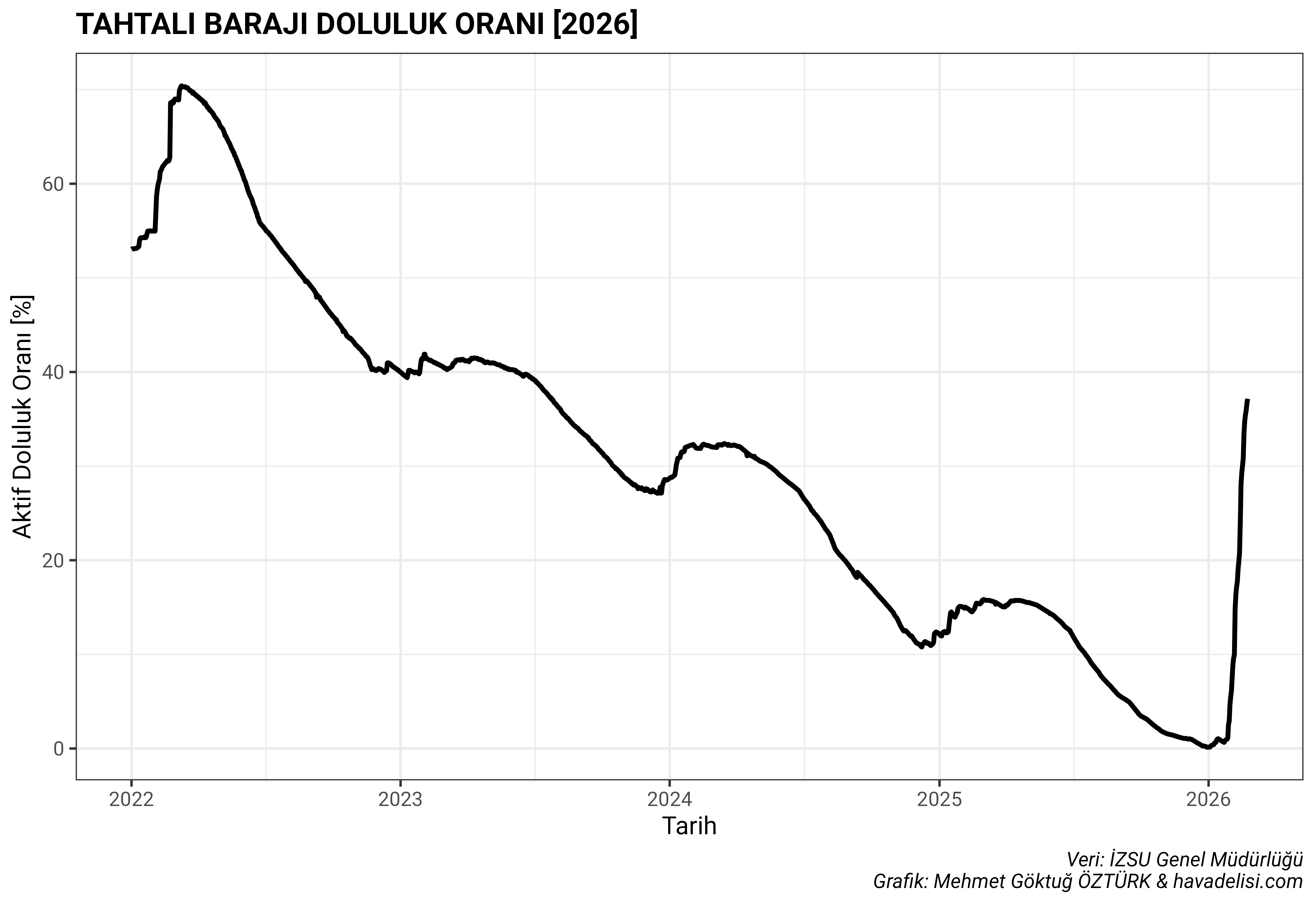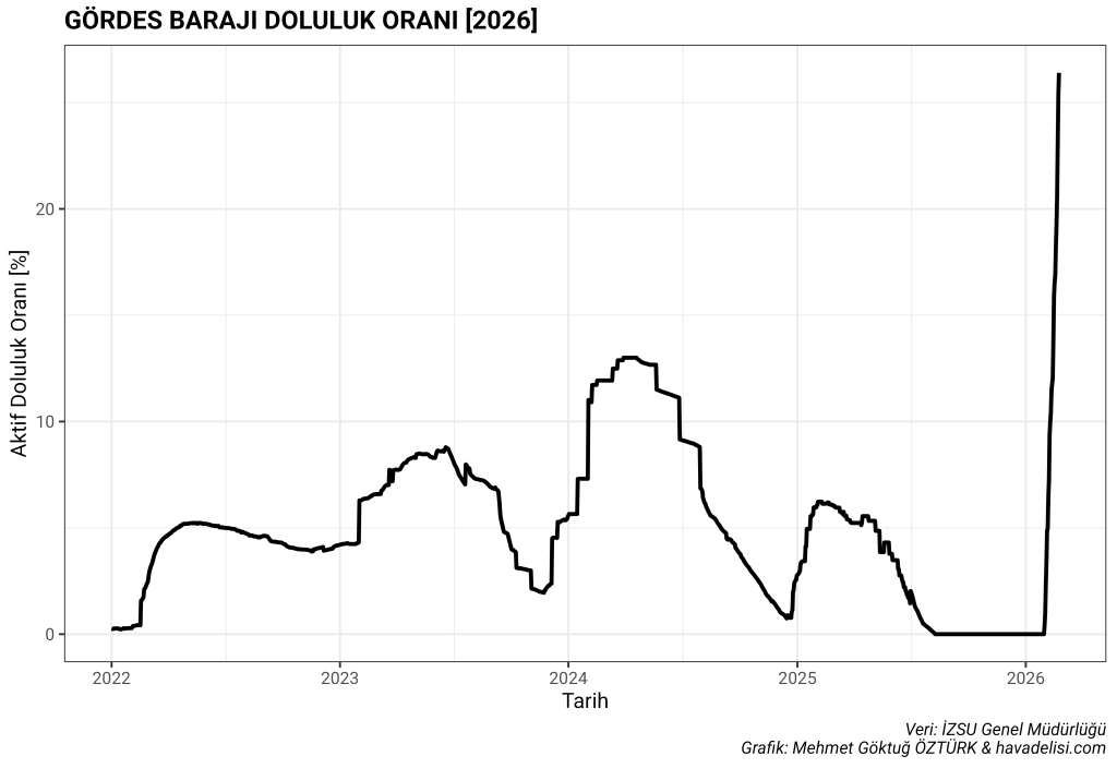 Tahtalı Barajı, İzmir’in en önemli içme suyu kaynaklarından. 2022 yılından beri süregelen kuraklık dolayısıyla barajdaki su neredeyse bitmişti. Ta ki bu kışa kadar. Ani bir sıçramayla beraber Tahtalı Barajı’nın doluluk oranı %40’lara yaklaştı.