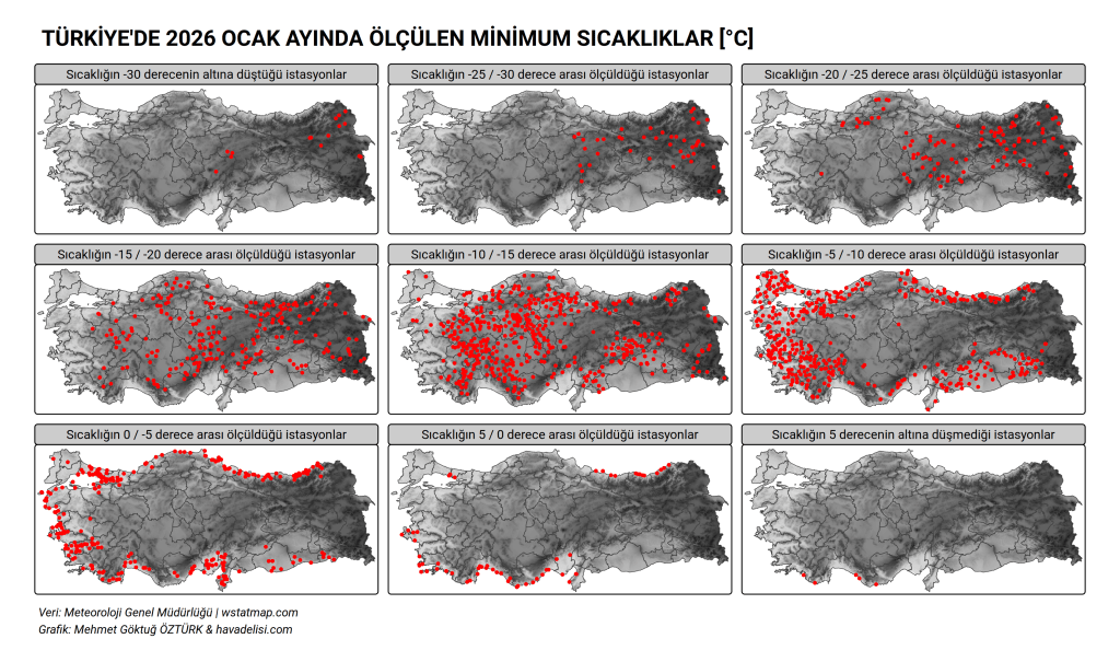 Ocak ayında ölçülen minimum sıcaklık ortalamalarına bir bakalım:
