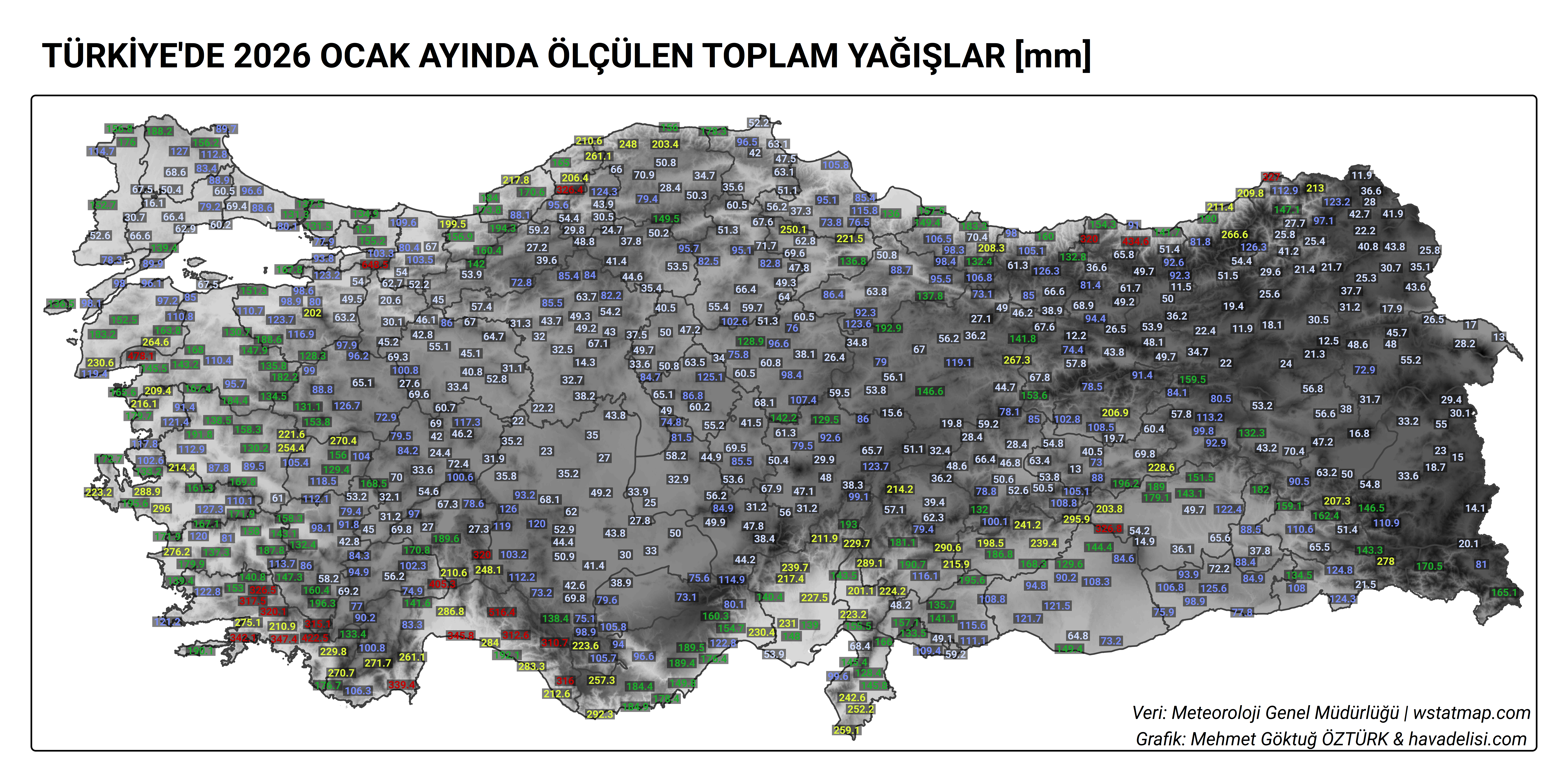 Yağışın 400 mm’yi aştığı istasyonlar. Her ne kadar Yuvacık Orman Sahası istasyonu verisinden şüphelensem de ocak ayı boyunca 400 mm’yi aşan 10, 500 mm’yi aşan 4 istasyon olmuş. Bunlar çok acayip değerler.verisinden şüphelensem de ocak ayı boyunca 400 mm’yi aşan 10, 500 mm’yi aşan 4 istasyon olmuş. Bunlar çok acayip değerler.