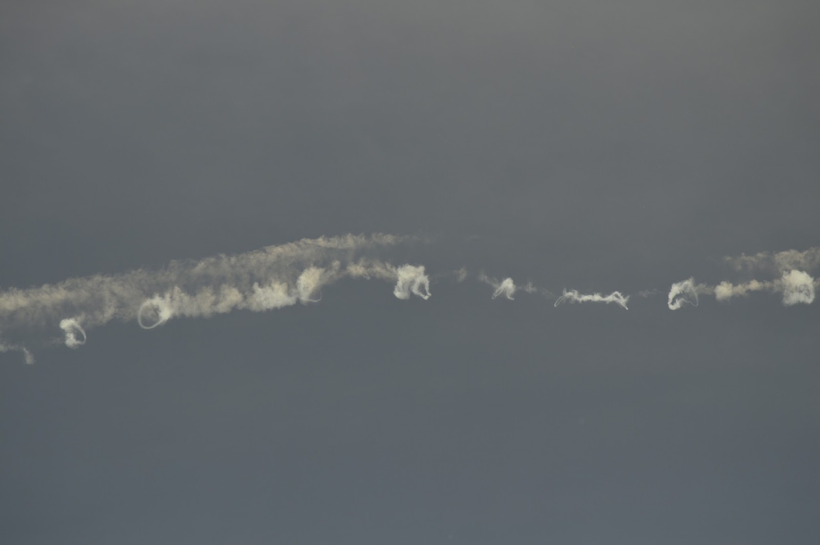 Dünkü kuvvetli lodos sırasında bir uçağın contraili, contrail ring (halkacıklar) halini aldı.