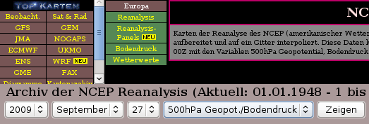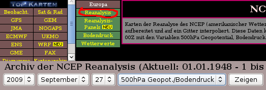 Tarihsel meteorolojik verilerin toplanıp model formatına getirilmesine ise reanaliz deniyor. NCEP adlı kurum, bundan yıllar önce bir reanaliz projesi başlatarak 1957-1996 arasındaki ham meteorolojik verileri model formatına getirmişti (Kalnay ve diğerleri, 1996). Wetterzentrale’nin sayfasında gördüğünüz haritalar, ilk kez bu projeyle bir araya getirilen verilerle çiziliyor. Sonraki yıllarda da analiz verilerinin arşivlenmesine devam edildi, ayrıca zaman çerçevesi 1957’nin de öncesini kapsayacak şekilde genişletildi. Unutmayın ki veri yoğunluğu ve dolayısıyla haritalarda gösterilen basınç ve sıcaklık dağılımlarının güvenilirliği geçmişe gidildikçe azalacaktır.