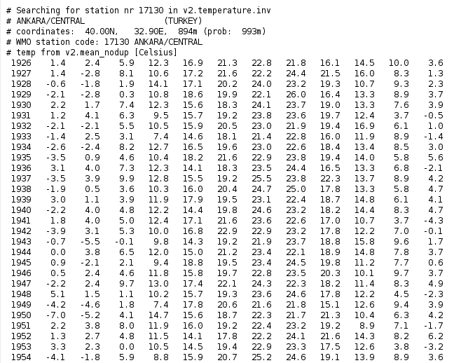 Aşağıda raw data (ham veri) görülüyor. Ankara’da bugüne kadar yaşanan en soğuk ay 1950 Ocak’ı imiş. Ben bilmiyordum.