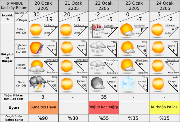 Bütün tahminler için yukarıdaki tablo ve aşağıdaki ikonlar kullanılacak. Resmi büyütmek için üzerine tıklayın.